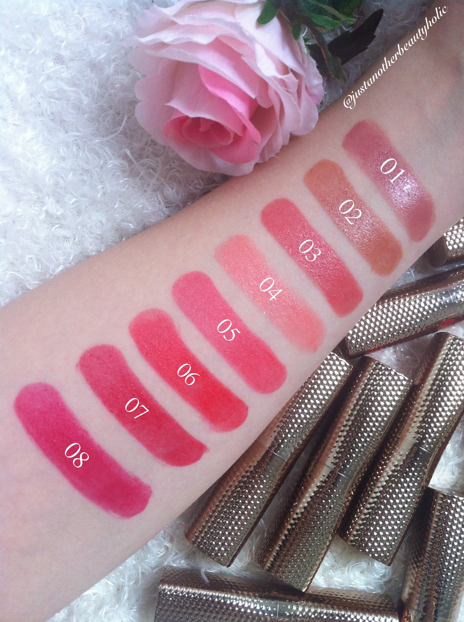 Kiko swatch 3 Published 26. May 2016 at 1936 × 2592 in Kiko Milano x Lovegrove Wanderlust Limited Edition | Mirage Lip Stylos – Swatches of all 16 colors! « Previous Next »